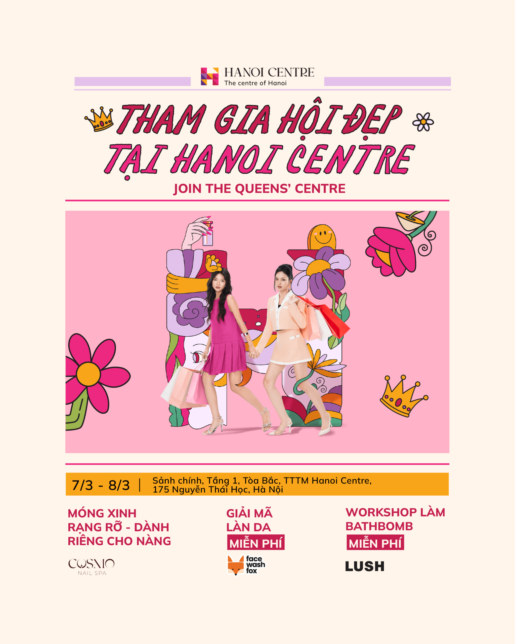 Nhân dịp 8/3, Hanoi Centre mời các nàng tham gia “Hội Đẹp” – không gian hội tụ những trải nghiệm chăm sóc nhan sắc tinh tế và đẳng cấp. Chẳng cần những thủ tục cầu kỳ, “tấm vé” duy nhất bạn cần chính là sự yêu bản thân: